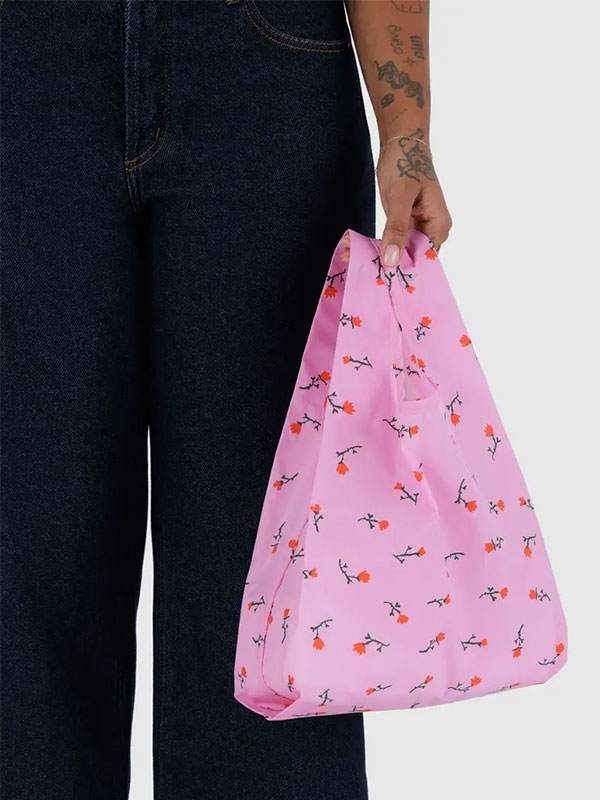 A smaller version of Baggu's best selling reusable shopping bag. Perfect for your lunch, extra shoes, or quick trip to the market, the Baby Baggu is durable yet lightweight, and can hold up to 23 kg (50 lbs)! Crafted in ripstop nylon, they fold up into a flat 10 x 10 cm size pouch so you can easily stow one inside your bag. Now made from 100% recycled nylon sourced from pre-consumer waste.