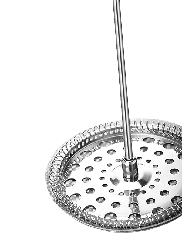 Reduce the use of disposable coffee filters and tea bags by using a French press! Made of thick borosilicate glass, 304-grade stainless steel and sustainable bamboo, this French press will bring an element to your table top that can well complement your sense of style and design. To ensure a pure and rich flavour, Our French press utilizes a seamless filtering system consisting of double layer 0.18mm ultra fine filter screens, a spring-loaded base that seals the edges during pressing and a lid strainer to trap any grounds. There’s no unpleasant muddiness you typically get with other french presses. The filter is also easy to disassemble, allowing for easier cleaning.