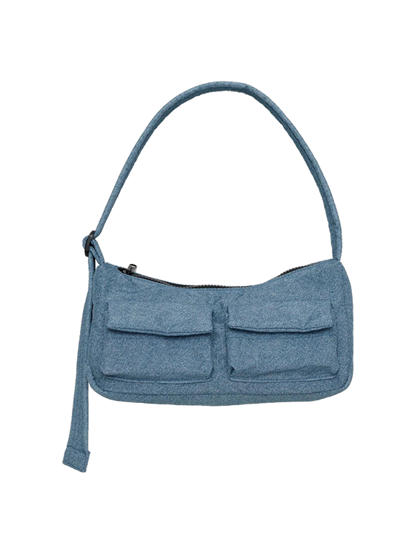 A baguette style purse with two external flap pockets for easy access to your essentials. Features two exterior flap pockets with magnetic closure.