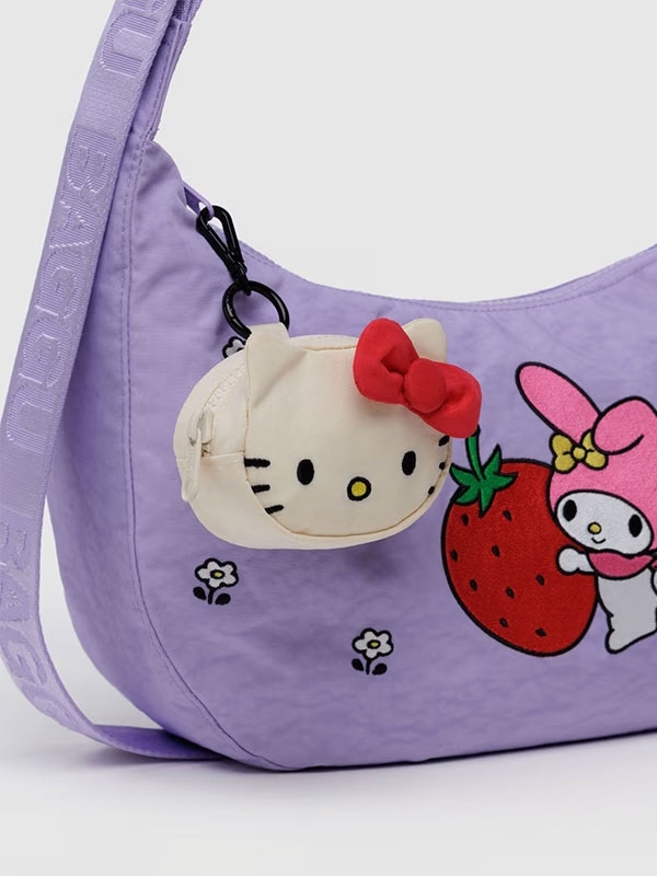 A charm-sized Hello Kitty® to accessorize large bags and keep small items like lip balm and credit cards within reach.