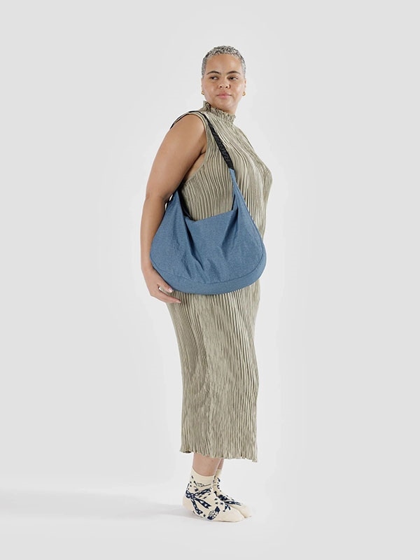 A larger crescent shaped purse that’s roomy enough to fit a laptop, plus all of your essentials. Complete with an interior zip pocket that makes it easy to stay organized.