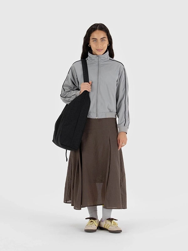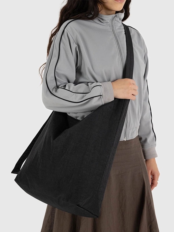 A slouchy, softly structured nylon bag with an adjustable strap. Interior zip pocket with a magnetic closure. Fits a 13/14” Puffy Laptop Sleeve.