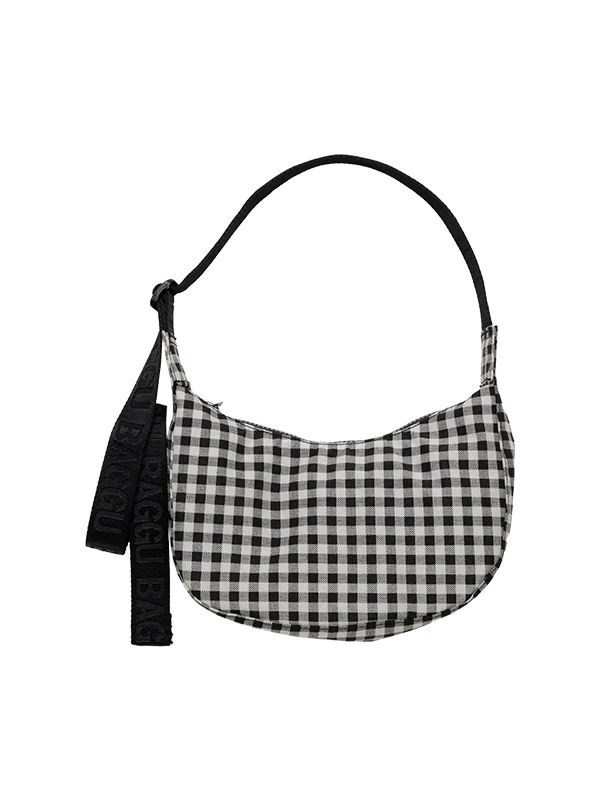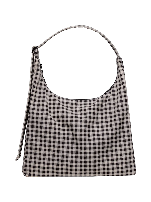 Nylon Shoulder Bag in Blurred Gingham Brown
