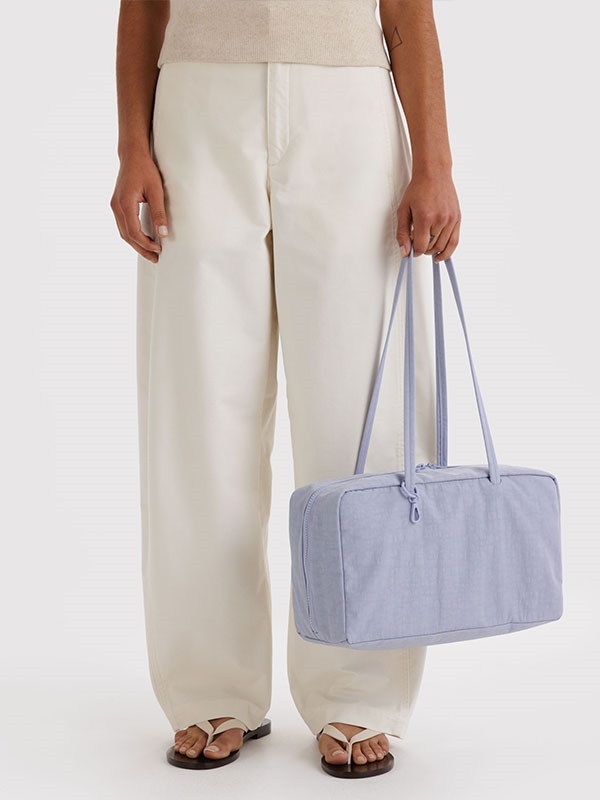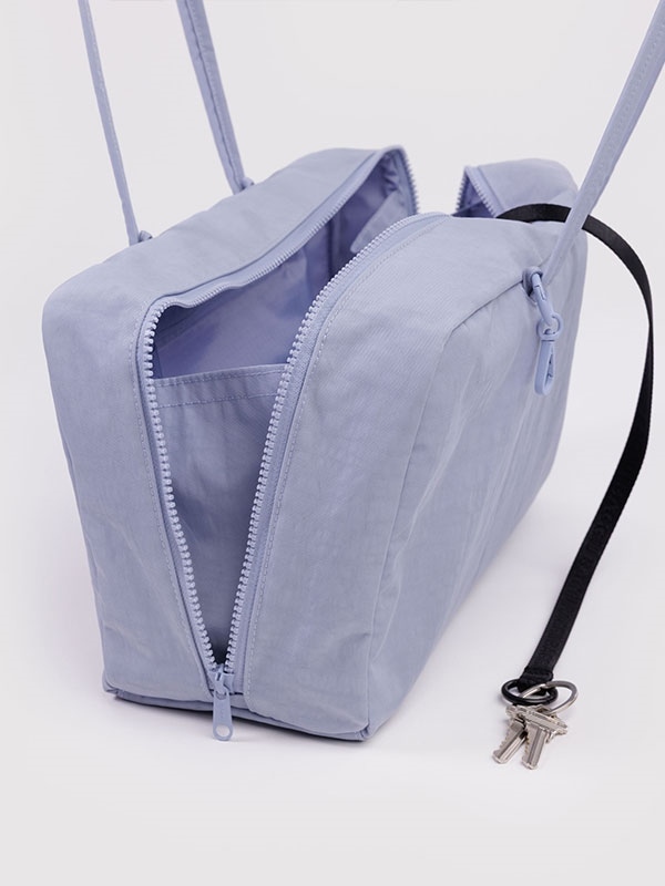 A larger take on Baggu's bowler bag, thoughtfully designed for ultimate versatility. With two 14" drop shoulder straps featuring four charm loops and a swivel clasp, it invites you to accessorize from every angle. The spacious interior offers a zip pocket for easy organization, a logo key leash for added convenience, and ample room to carry more than just the essentials. Finished with a smooth zip closure and dual pulls, this bag blends function and style effortlessly.