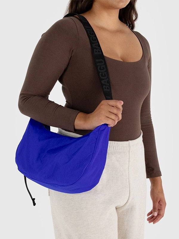 Practical doesn’t have to be boring. Baggu Medium Nylon Crescent Bag is effortlessly casual and large enough to carry more than just the essentials. Wear it slung over your shoulder or crossbody for a hands-free experience. Complete with two interior pockets that make it easy to stay organized.