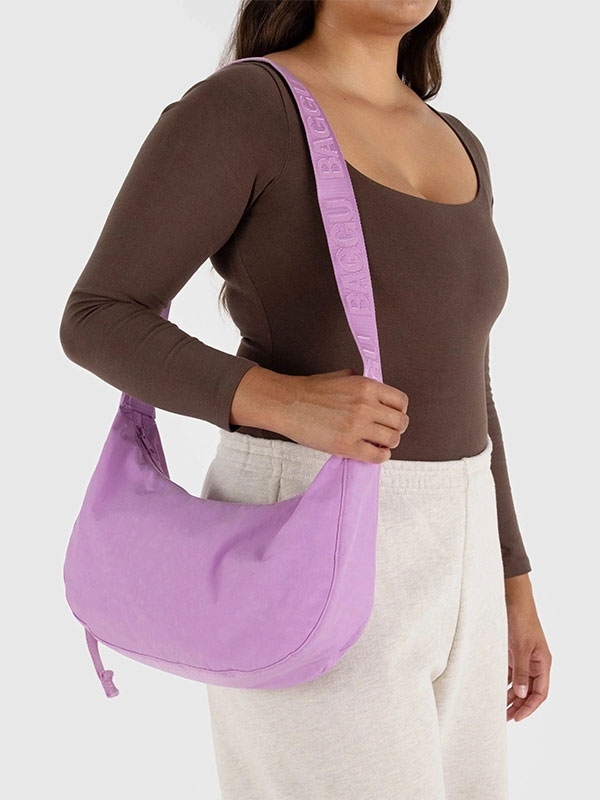 Practical doesn’t have to be boring. Baggu Medium Nylon Crescent Bag is effortlessly casual and large enough to carry more than just the essentials. Wear it slung over your shoulder or crossbody for a hands-free experience. Complete with two interior pockets that make it easy to stay organized.