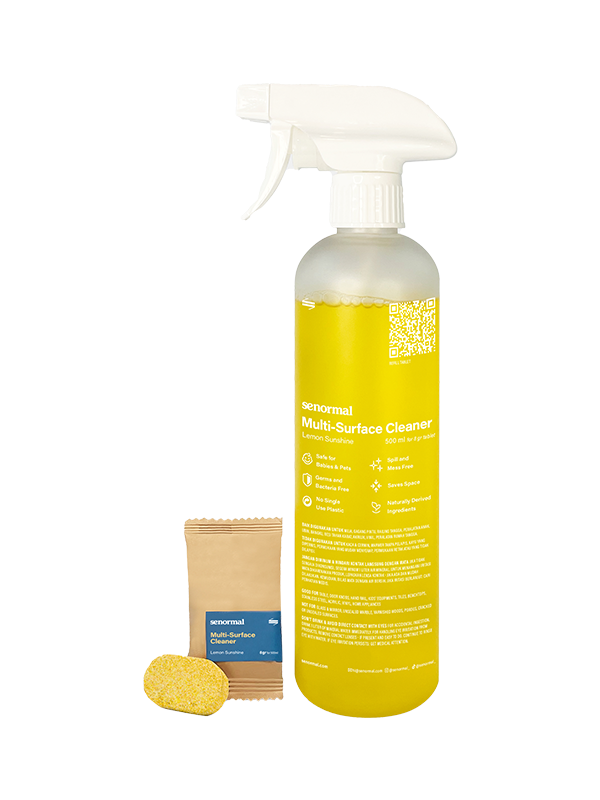 Made for a cleaner home and planet, Senormal Multi-Surface Cleaner tackles every inch of your home without any of the waste. Just fill with water, drop in a tablet, and voila! You've got one cleaner to rule them all. Free of parabens, chlorine, ammonia and harsh petrochemicals.