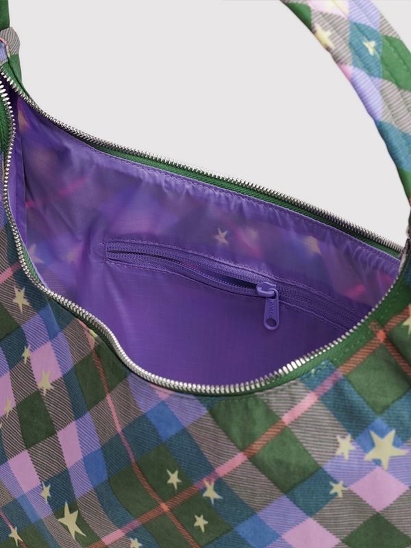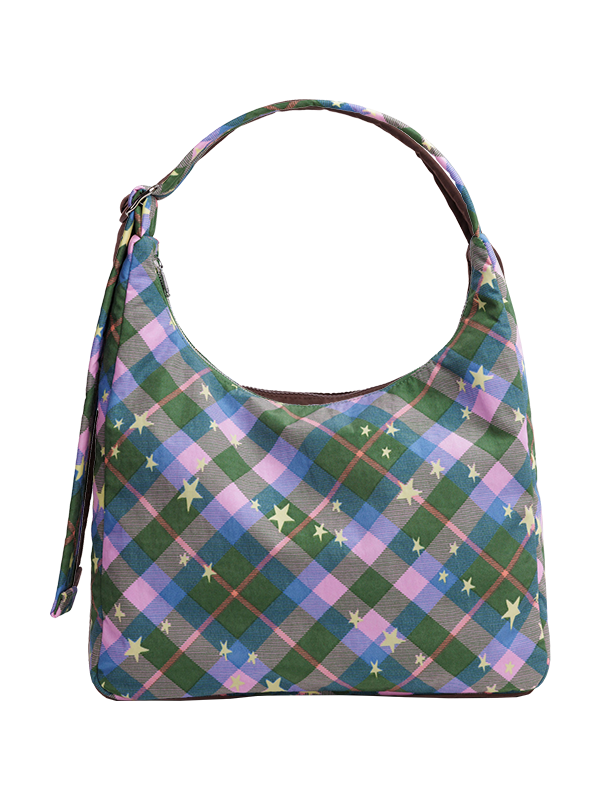 Nylon Shoulder Bag in Green Star Plaid