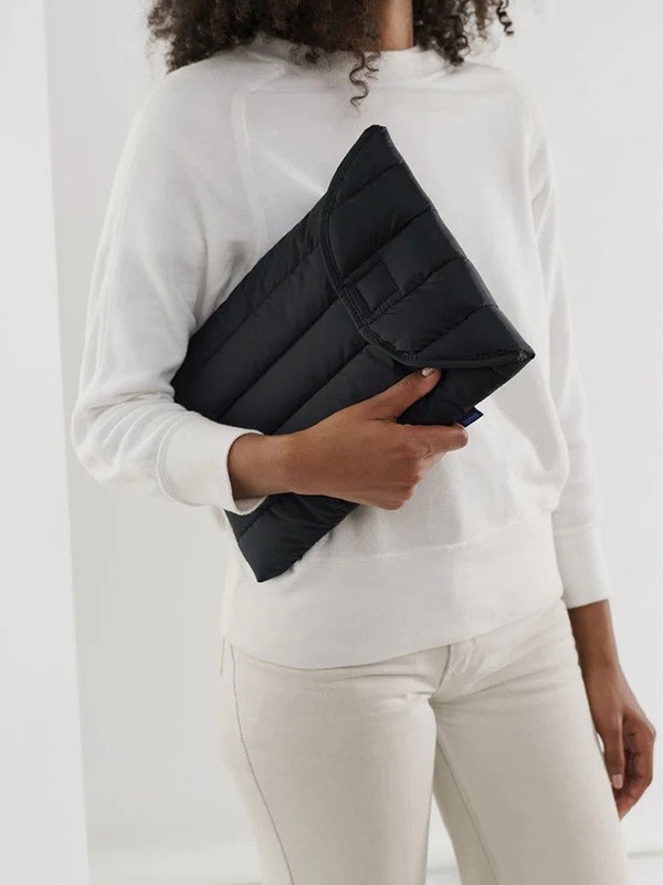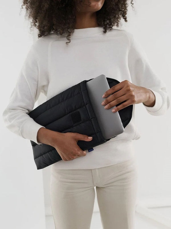 Your laptop does so much for you. Doesn’t it deserve a comfy cozy place to live? Baggu's puffy laptop sleeve is quilted and stuffed to provide your 13" laptop or tablet with just enough padding for comfortable rides. Features a velcro closure.