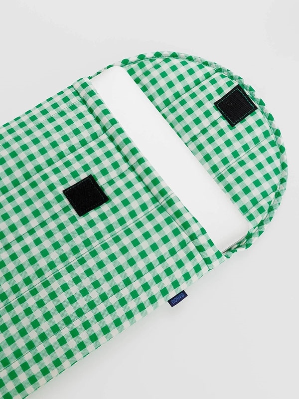 Puffy Laptop Sleeve 16" in Green Gingham