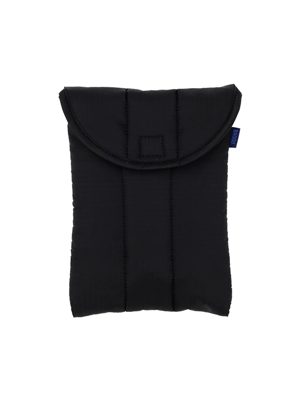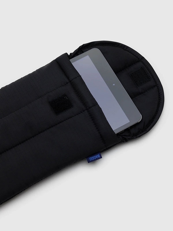 Keep your tablet cozy with Baggu Puffy Tablet Sleeve. Quilted and stuffed to provide your tablet with just enough padding for everyday rides. Features a velcro closure.