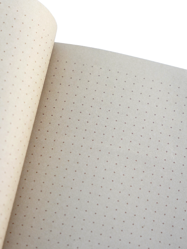 The Rubble Book features unbleached paper, reducing the environmental impact by avoiding the addition of harmful chemicals like dioxins. This choice not only benefits the environment but also ensures a natural, earthy aesthetic that is pleasing to the eye and touch. The Kraft Samson cover, combined with the Eska® superior 100% recycled solid board, provides durability and a rugged charm, making it a sturdy companion for daily use. The exposed Smythe binding, adds a unique and artisanal touch.