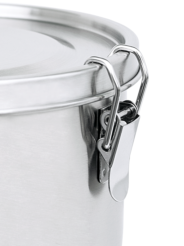 Stainless steel container: 100% recyclable in metal recycling.