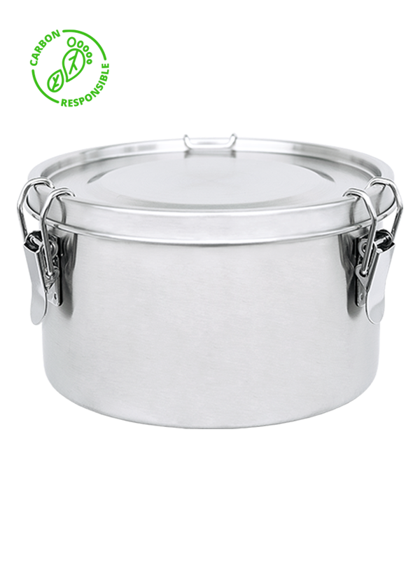 Stainless steel container: 100% recyclable in metal recycling.